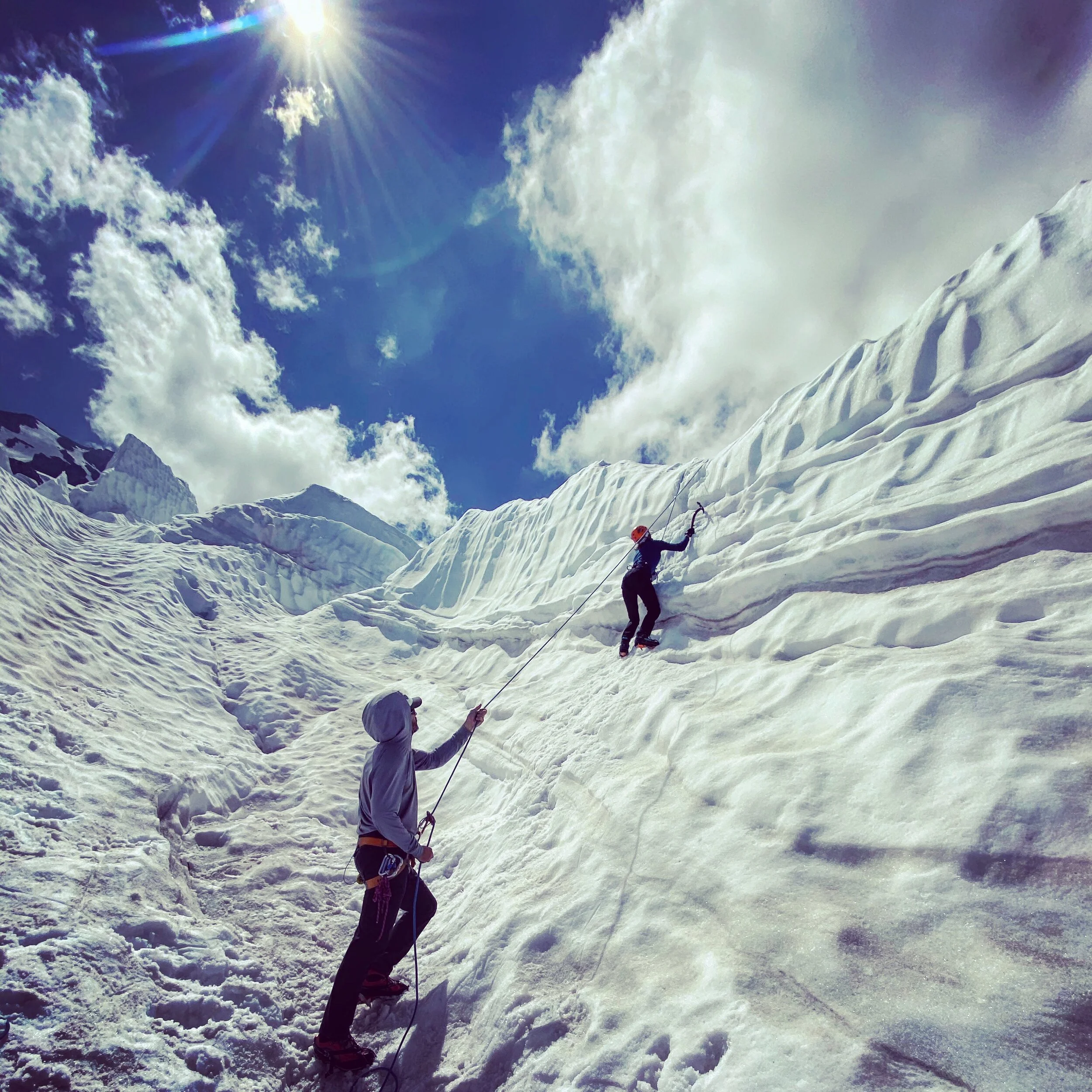 Crevasse rescue training will include all hauling systems and one-on-one rescue techniques. We will also do some ice climbing on the glacier features or out of an open crevasse.